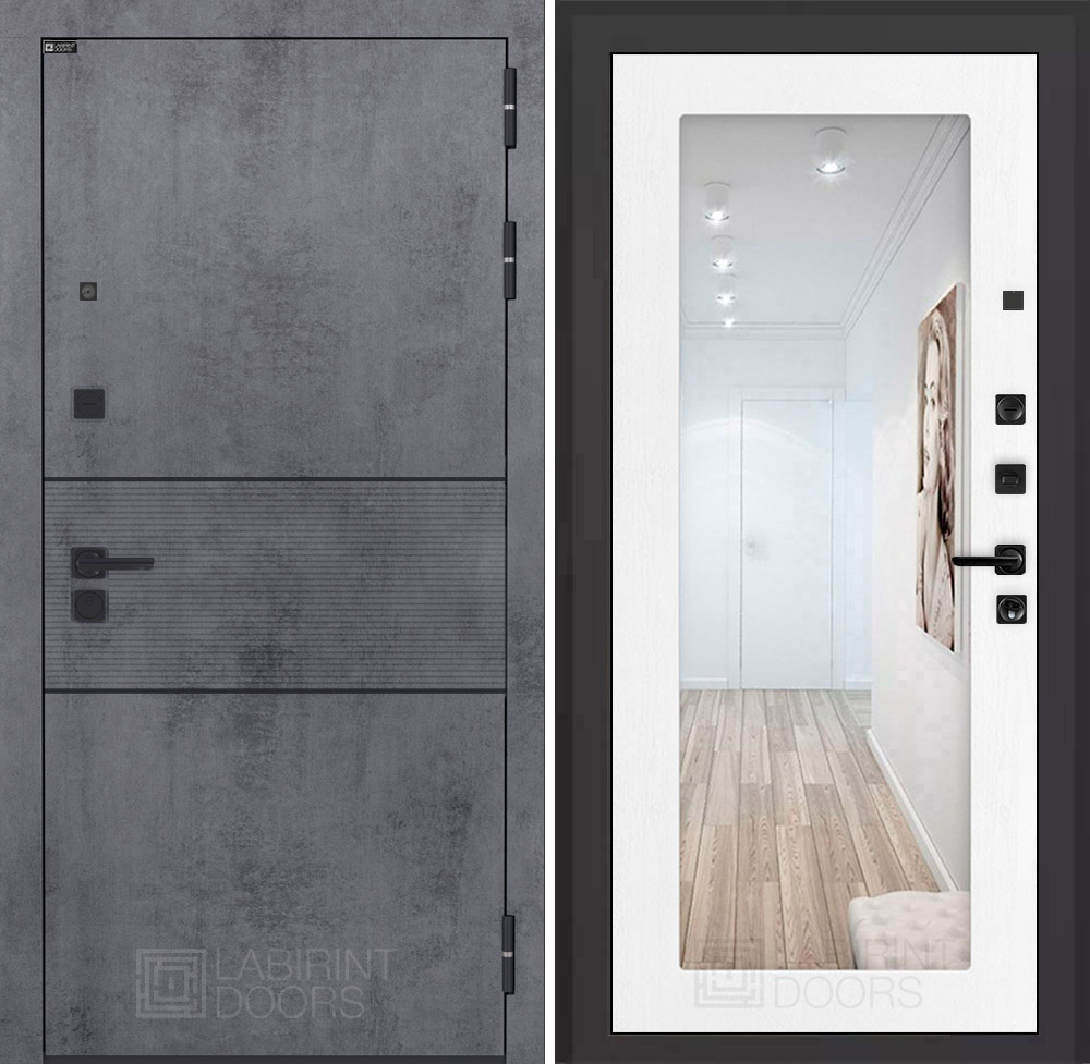 Отделка снаружи: Современная MDF панель 10 мм с наличником, цвет «Бетон темный», вставка черный молдинг