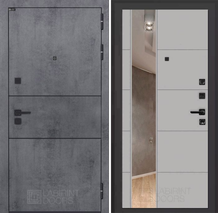 Отделка снаружи=’Современная MDF панель 10 мм с наличником, цвет «Бетон темный», вставка черный молдинг’