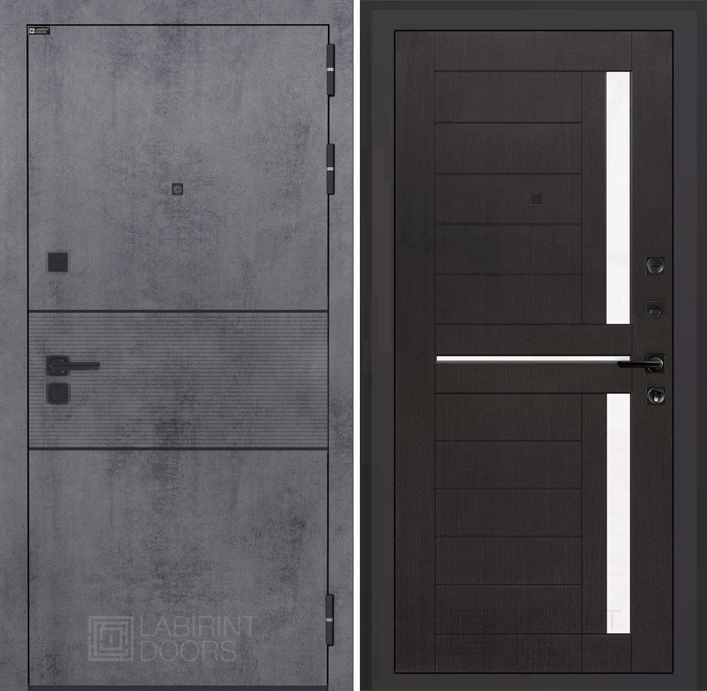 Отделка снаружи: Современная MDF панель 10 мм с наличником, цвет «Бетон темный», вставка черный молдинг