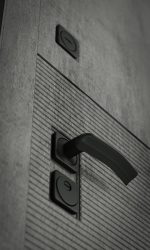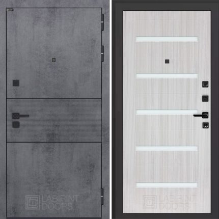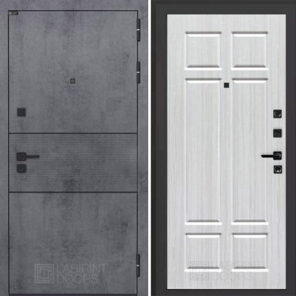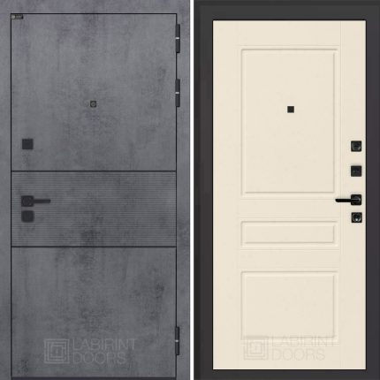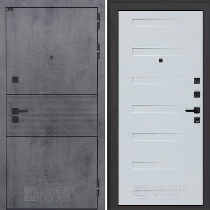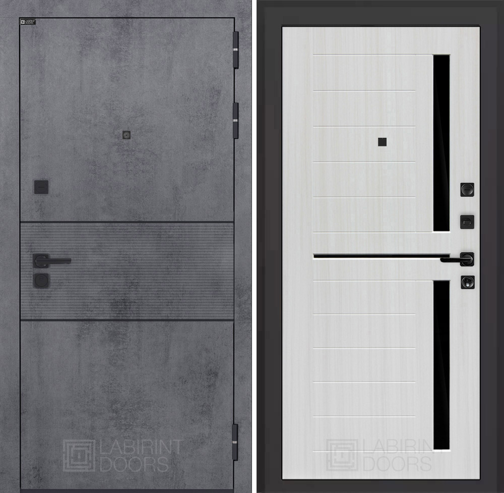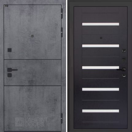 Отделка снаружи: Современная MDF панель 10 мм с наличником, цвет «Бетон темный», вставка черный молдинг