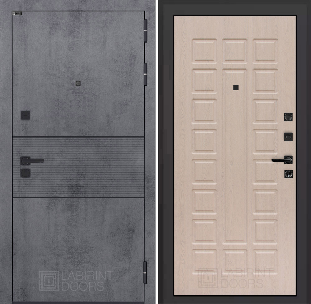 Отделка снаружи: Современная MDF панель 10 мм с наличником, цвет «Бетон темный», вставка черный молдинг