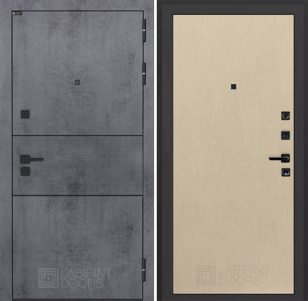 Отделка снаружи: Современная MDF панель 10 мм с наличником, цвет «Бетон темный», вставка черный молдинг