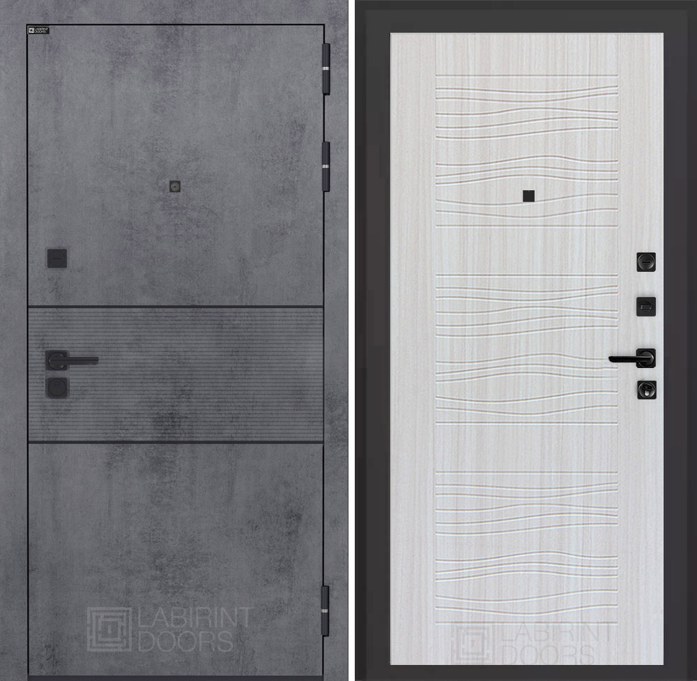 Отделка снаружи: Современная MDF панель 10 мм с наличником, цвет «Бетон темный», вставка черный молдинг