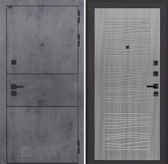 Отделка снаружи=’Современная MDF панель 10 мм с наличником, цвет «Бетон темный», вставка черный молдинг’