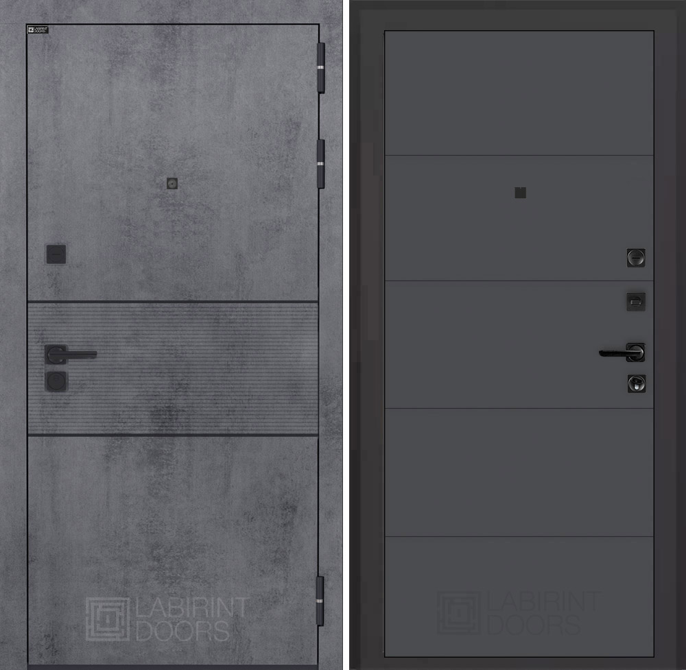 Отделка снаружи: Современная MDF панель 10 мм с наличником, цвет «Бетон темный», вставка черный молдинг
