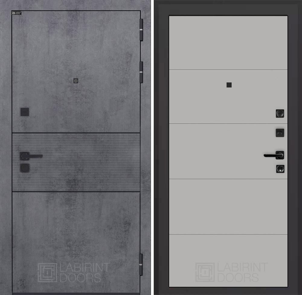 Отделка снаружи=’Современная MDF панель 10 мм с наличником, цвет «Бетон темный», вставка черный молдинг’