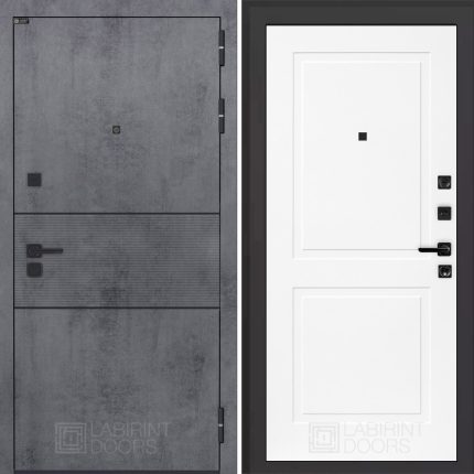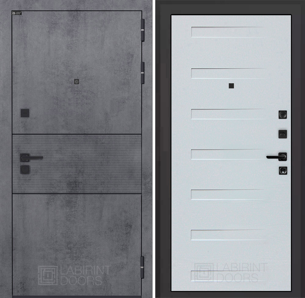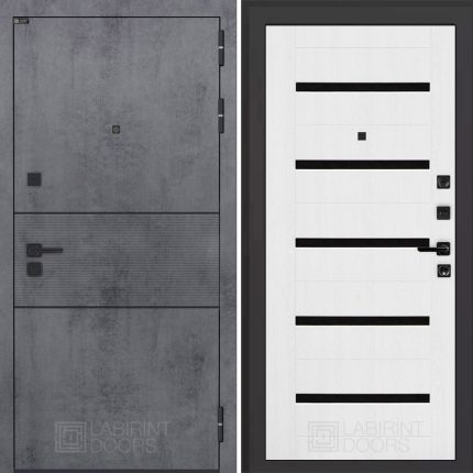 Отделка снаружи: Современная MDF панель 10 мм с наличником, цвет «Бетон темный», вставка черный молдинг