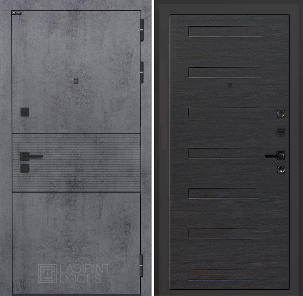 Отделка снаружи: Современная MDF панель 10 мм с наличником, цвет «Бетон темный», вставка черный молдинг