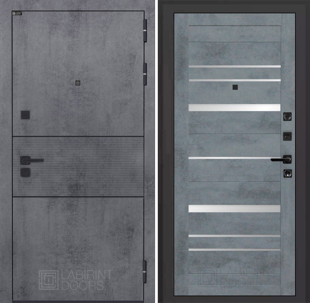 Отделка снаружи: Современная MDF панель 10 мм с наличником, цвет «Бетон темный», вставка черный молдинг