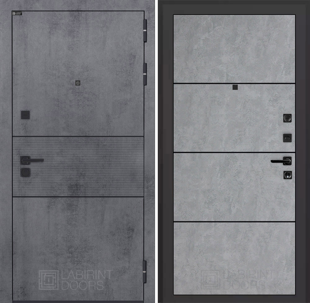 Отделка снаружи: Современная MDF панель 10 мм с наличником, цвет «Бетон темный», вставка черный молдинг