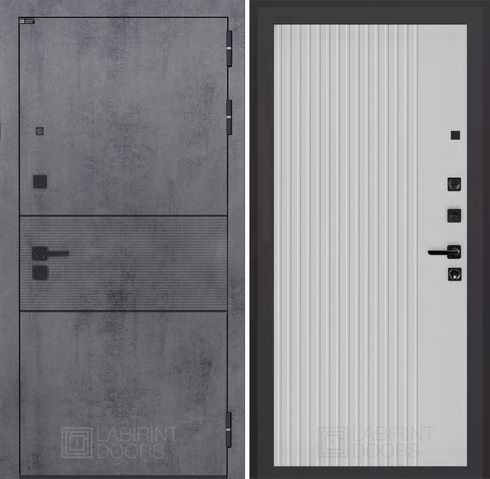 Отделка снаружи: Современная MDF панель 10 мм с наличником, цвет «Бетон темный», вставка черный молдинг