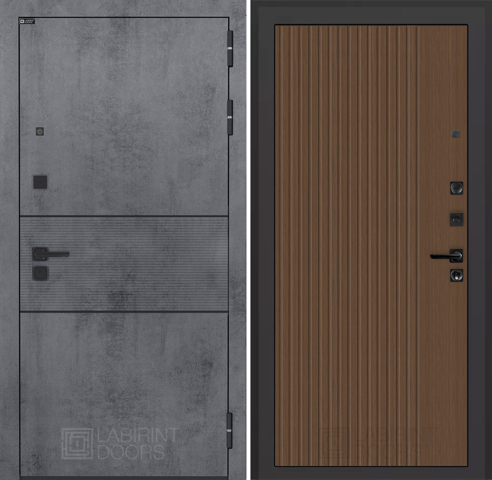 Отделка снаружи: Современная MDF панель 10 мм с наличником, цвет «Бетон темный», вставка черный молдинг