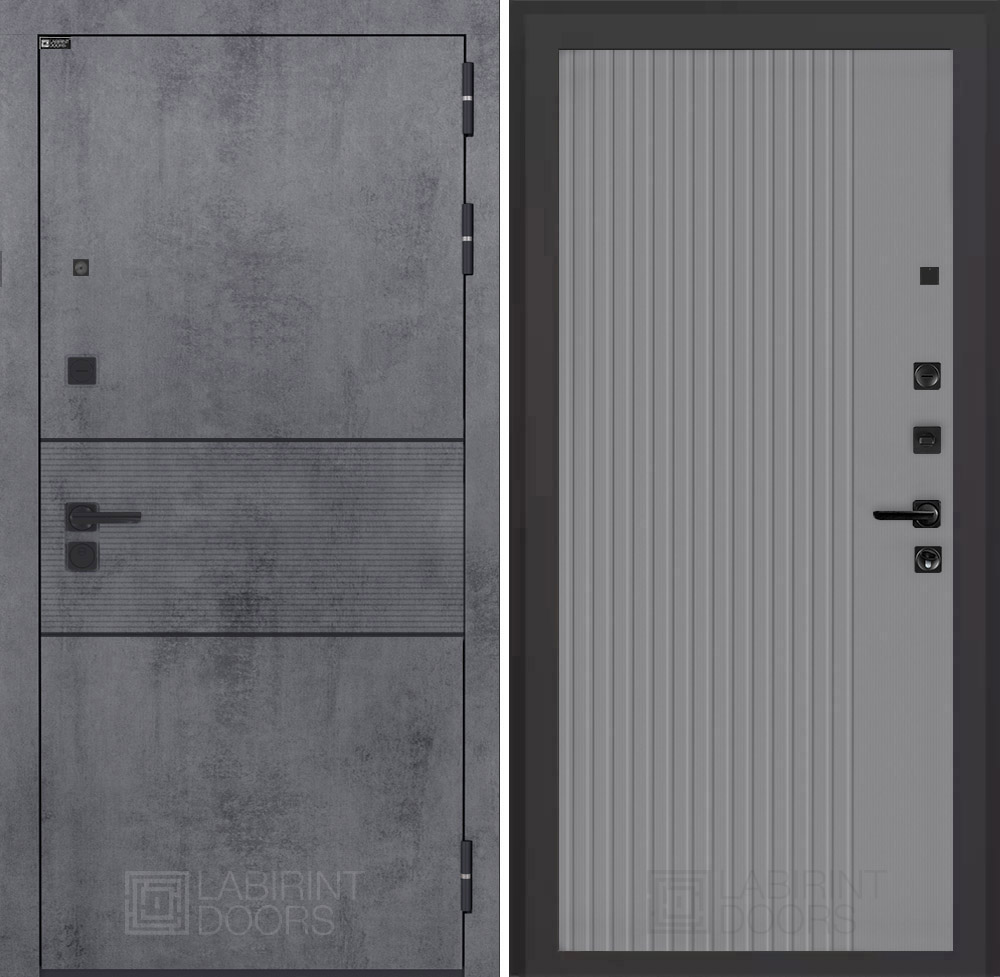 Отделка снаружи: Современная MDF панель 10 мм с наличником, цвет «Бетон темный», вставка черный молдинг