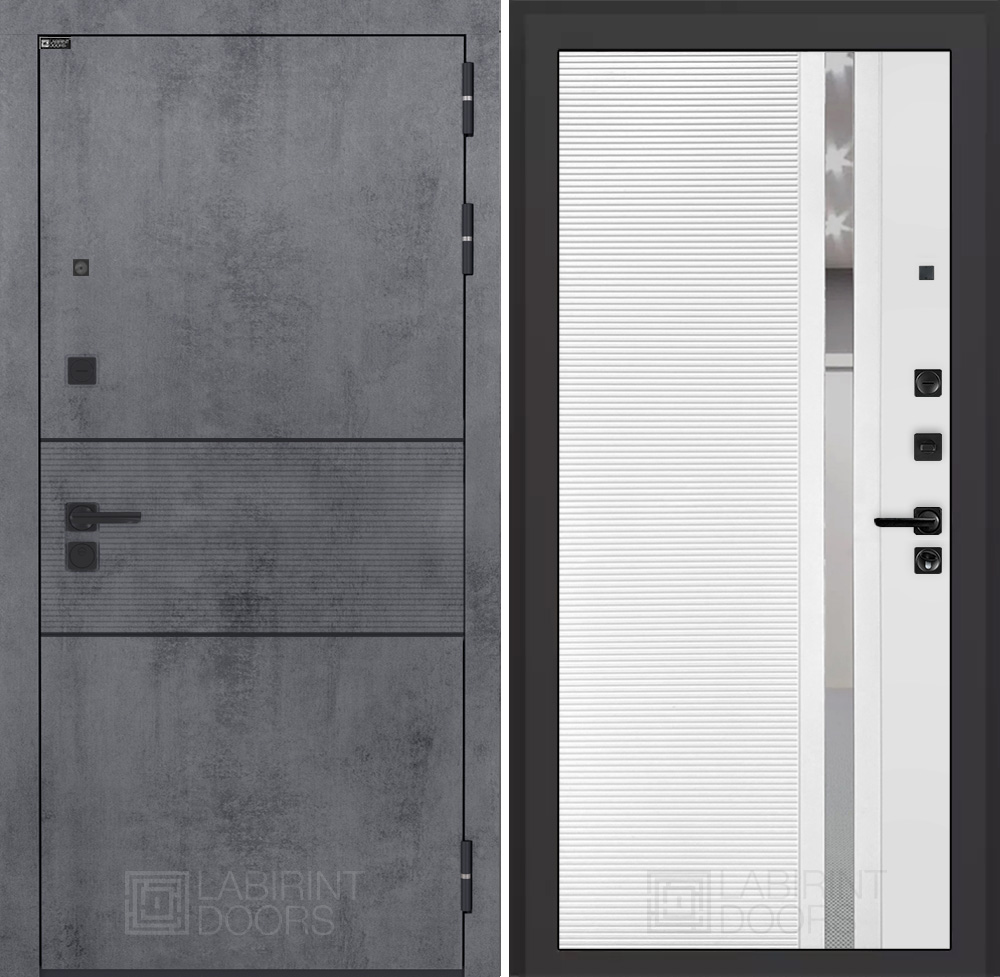 Отделка снаружи: Современная MDF панель 10 мм с наличником, цвет «Бетон темный», вставка черный молдинг