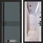 Отделка снаружи: Фрезерованная МДФ панель 10 мм, цвет «Velutto Verde» с патиной и вставкой из металла в цвет наличника