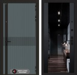 Отделка снаружи: Фрезерованная МДФ панель 10 мм, цвет «Velutto Verde» с патиной и вставкой из металла в цвет наличника