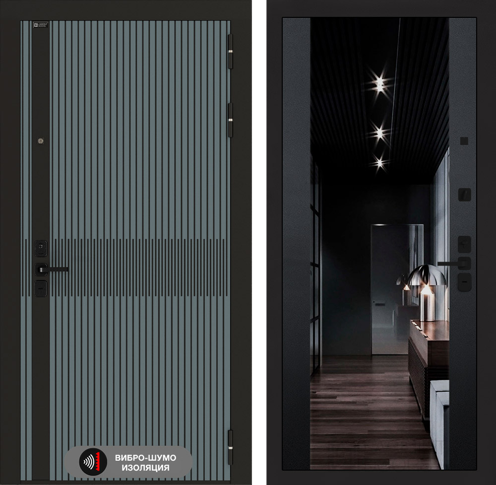 Внутренняя отделка: Декоративная MDF панель 16 мм с Зеркалом тонированным графит, цвет «Черный кварц»