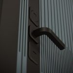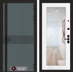 Отделка снаружи: Фрезерованная МДФ панель 10 мм, цвет «Velutto Verde» с патиной и вставкой из металла в цвет наличника