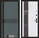 Отделка снаружи: Фрезерованная МДФ панель 10 мм, цвет «Velutto Verde» с патиной и вставкой из металла в цвет наличника