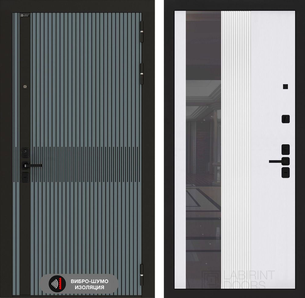 Внутренняя отделка: Фрезерованная МДФ панель 10 мм с тонированным зеркалом (ширина 244 мм), цвет «Белый рельеф софт»