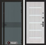 Отделка снаружи: Фрезерованная МДФ панель 10 мм, цвет «Velutto Verde» с патиной и вставкой из металла в цвет наличника