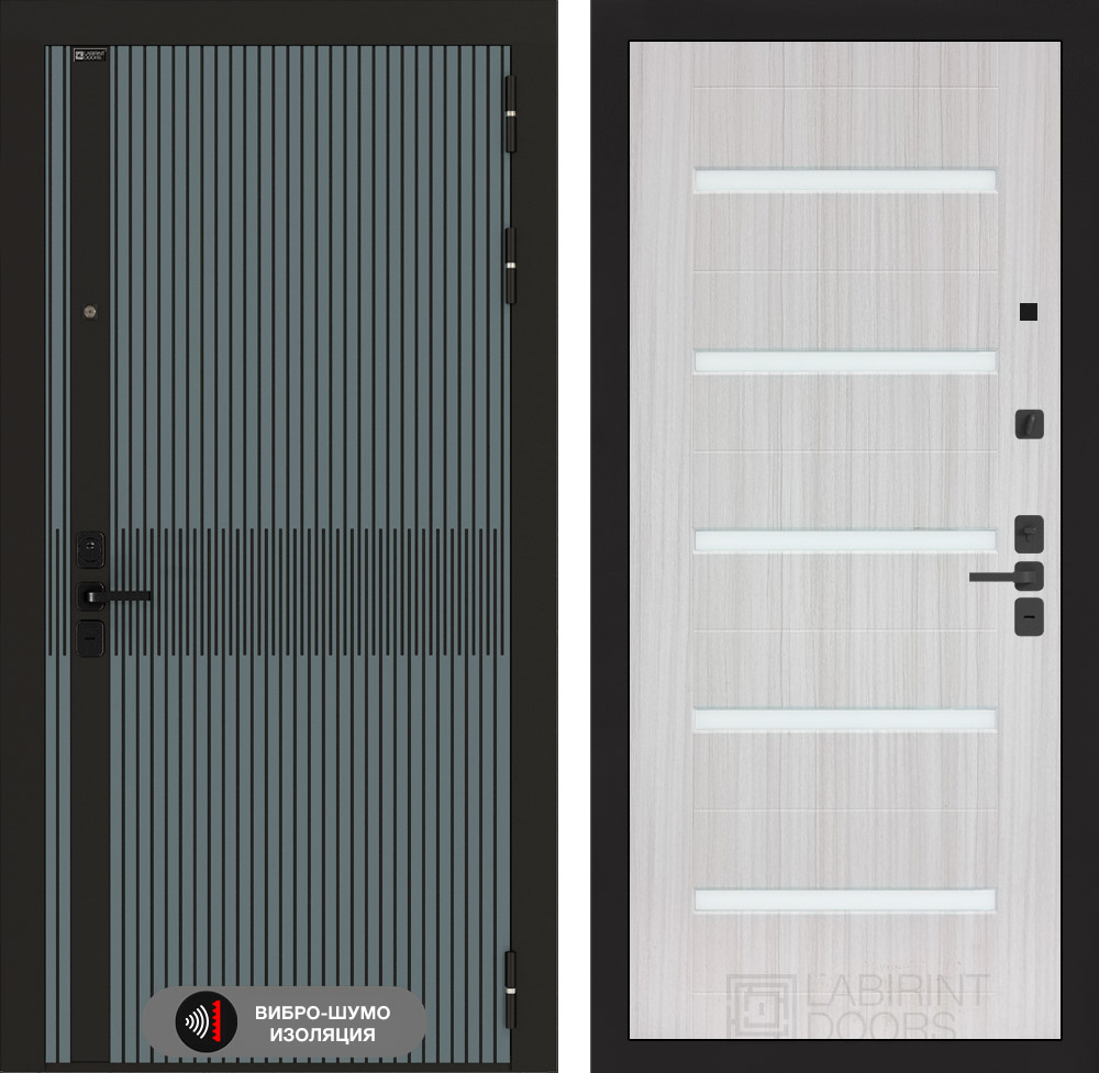 Полный комплект: Фурнитура в черном цвете: Броненакладка врезная, накладка со шторкой, глазок , дверная ручка, ночная задвижка. Цилиндр ключ-вертушка (производитель не регламентируется), регулируемый эксцентрик.