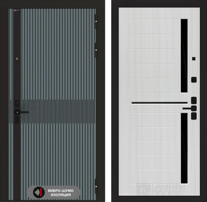 Отделка снаружи=’Фрезерованная МДФ панель 10 мм, цвет «Velutto Verde» с патиной и вставкой из металла в цвет наличника’