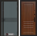 Отделка снаружи: Фрезерованная МДФ панель 10 мм, цвет «Velutto Verde» с патиной и вставкой из металла в цвет наличника