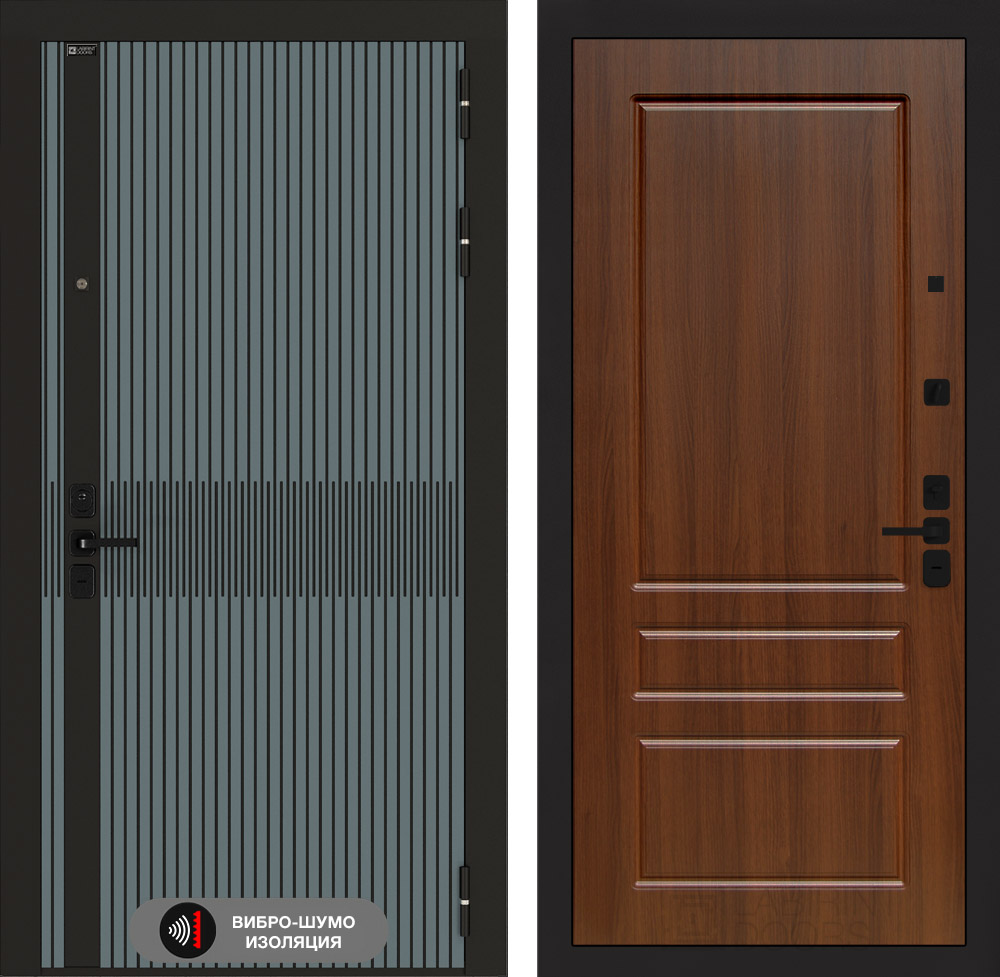 Полный комплект: Фурнитура в черном цвете: Броненакладка врезная, накладка со шторкой, глазок , дверная ручка, ночная задвижка. Цилиндр ключ-вертушка (производитель не регламентируется), регулируемый эксцентрик.