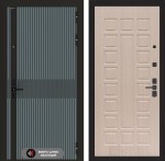 Отделка снаружи: Фрезерованная МДФ панель 10 мм, цвет «Velutto Verde» с патиной и вставкой из металла в цвет наличника