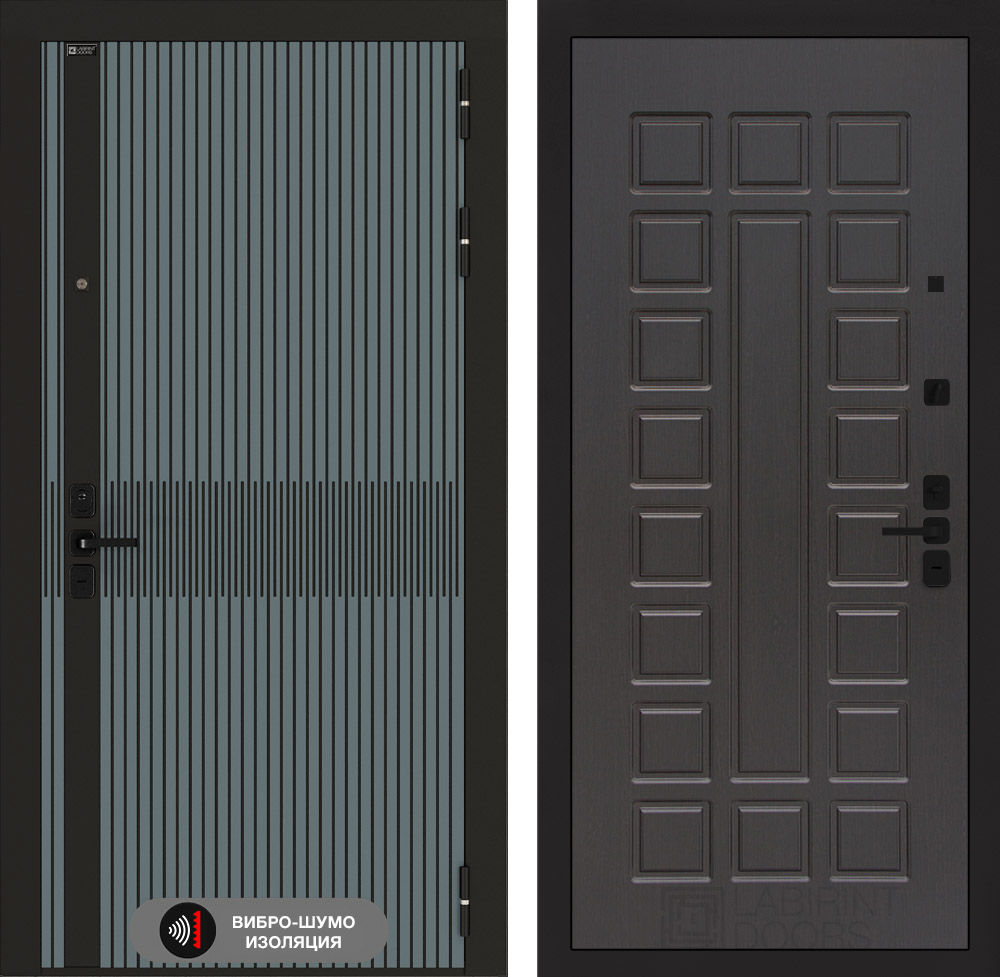 Отделка снаружи: Фрезерованная МДФ панель 10 мм, цвет «Velutto Verde» с патиной и вставкой из металла в цвет наличника