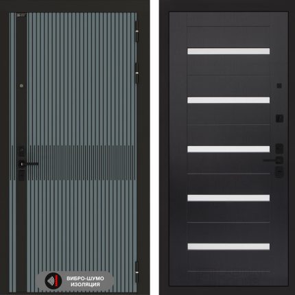 Отделка снаружи: Фрезерованная МДФ панель 10 мм, цвет «Velutto Verde» с патиной и вставкой из металла в цвет наличника