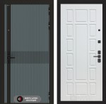 Отделка снаружи: Фрезерованная МДФ панель 10 мм, цвет «Velutto Verde» с патиной и вставкой из металла в цвет наличника