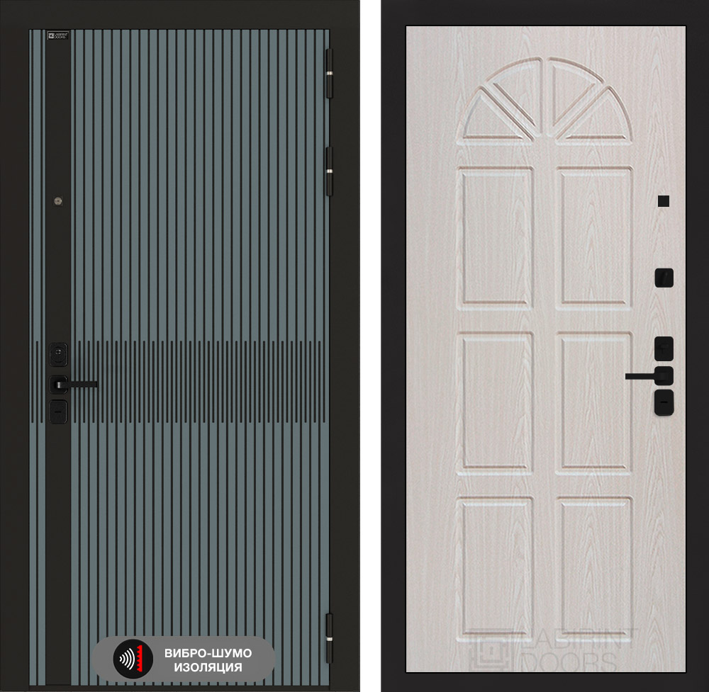 Полный комплект: Фурнитура в черном цвете: Броненакладка врезная, накладка со шторкой, глазок , дверная ручка, ночная задвижка. Цилиндр ключ-вертушка (производитель не регламентируется), регулируемый эксцентрик.