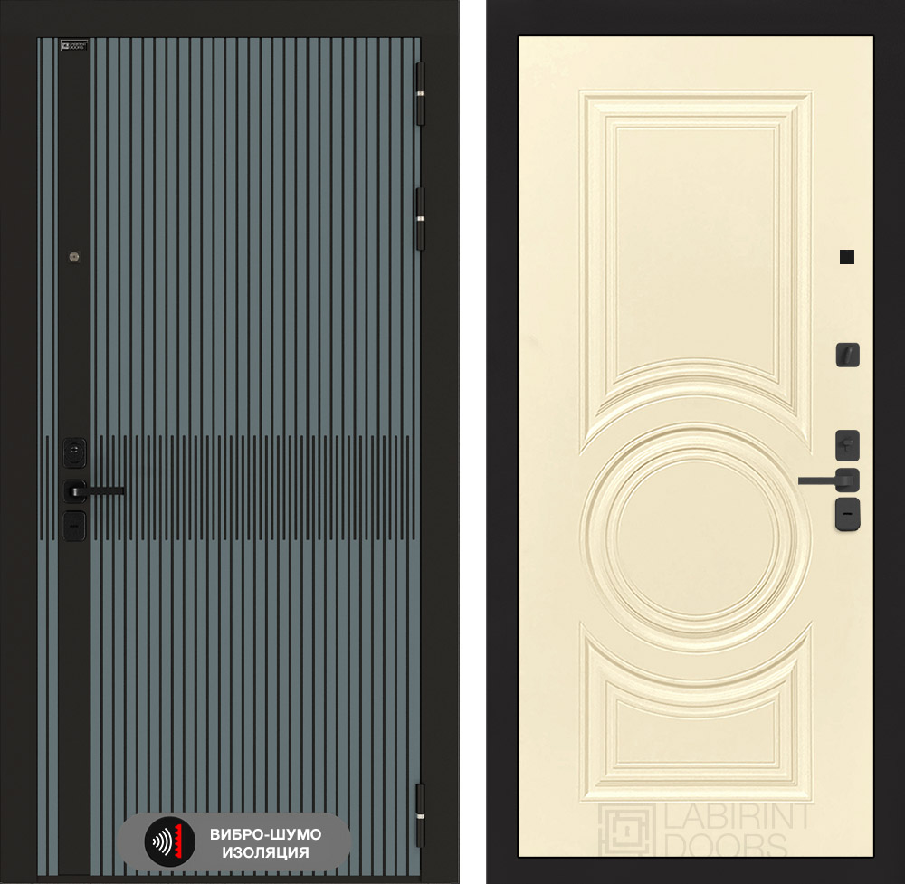 Полный комплект: Фурнитура в черном цвете: Броненакладка врезная, накладка со шторкой, глазок , дверная ручка, ночная задвижка. Цилиндр ключ-вертушка (производитель не регламентируется), регулируемый эксцентрик.
