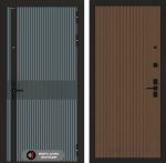 Отделка снаружи: Фрезерованная МДФ панель 10 мм, цвет «Velutto Verde» с патиной и вставкой из металла в цвет наличника