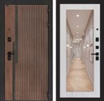 Отделка снаружи: Фрезерованная МДФ панель 10 мм, цвет «Орех американский» с патиной и вставками из металла в цвет наличника
