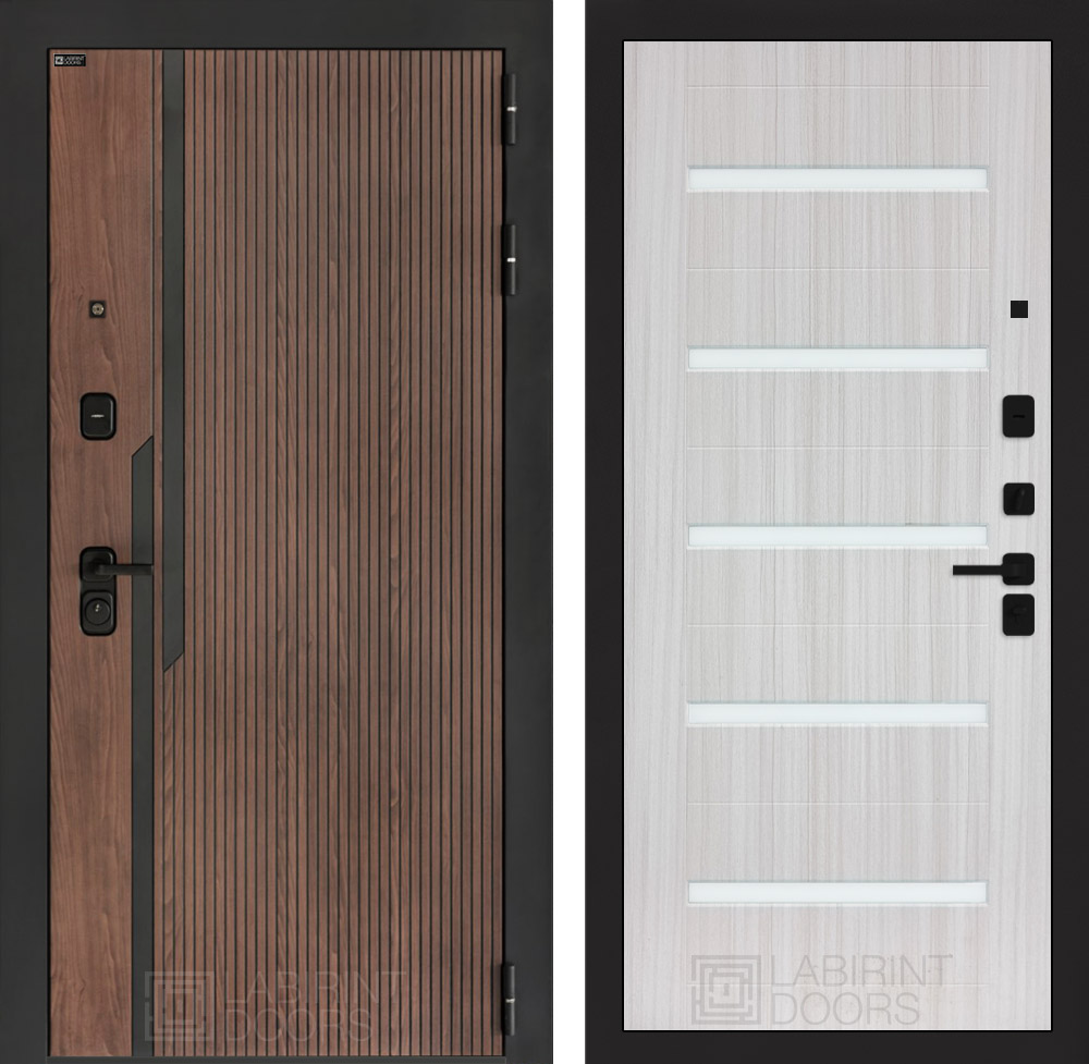 Полный комплект: Фурнитура в черном цвете: Броненакладка врезная, накладка со шторкой, глазок , дверная ручка, ночная задвижка. Цилиндр ключ-вертушка (производитель не регламентируется), регулируемый эксцентрик.