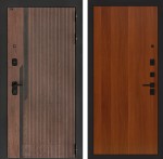 Отделка снаружи: Фрезерованная МДФ панель 10 мм, цвет «Орех американский» с патиной и вставками из металла в цвет наличника