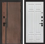 Отделка снаружи: Фрезерованная МДФ панель 10 мм, цвет «Орех американский» с патиной и вставками из металла в цвет наличника