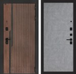 Отделка снаружи: Фрезерованная МДФ панель 10 мм, цвет «Орех американский» с патиной и вставками из металла в цвет наличника