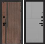 Отделка снаружи: Фрезерованная МДФ панель 10 мм, цвет «Орех американский» с патиной и вставками из металла в цвет наличника