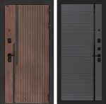 Отделка снаружи: Фрезерованная МДФ панель 10 мм, цвет «Орех американский» с патиной и вставками из металла в цвет наличника