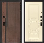 Отделка снаружи: Фрезерованная МДФ панель 10 мм, цвет «Орех американский» с патиной и вставками из металла в цвет наличника