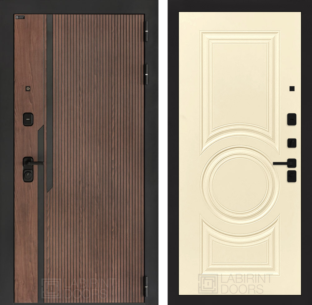Полный комплект: Фурнитура в черном цвете: Броненакладка врезная, накладка со шторкой, глазок , дверная ручка, ночная задвижка. Цилиндр ключ-вертушка (производитель не регламентируется), регулируемый эксцентрик.
