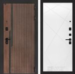 Отделка снаружи: Фрезерованная МДФ панель 10 мм, цвет «Орех американский» с патиной и вставками из металла в цвет наличника