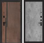 Отделка снаружи: Фрезерованная МДФ панель 10 мм, цвет «Орех американский» с патиной и вставками из металла в цвет наличника