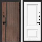 Отделка снаружи: Фрезерованная МДФ панель 10 мм, цвет «Орех американский» с патиной и вставками из металла в цвет наличника