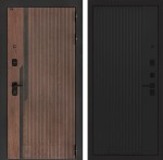 Отделка снаружи: Фрезерованная МДФ панель 10 мм, цвет «Орех американский» с патиной и вставками из металла в цвет наличника