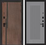 Отделка снаружи: Фрезерованная МДФ панель 10 мм, цвет «Орех американский» с патиной и вставками из металла в цвет наличника
